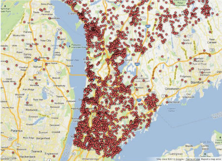 而在枪击案件频发的时候,纽约媒体联合Google利用数据打造了一张包含持枪者姓名和地址的Google地图,标注了持枪许可证的拥有状况。