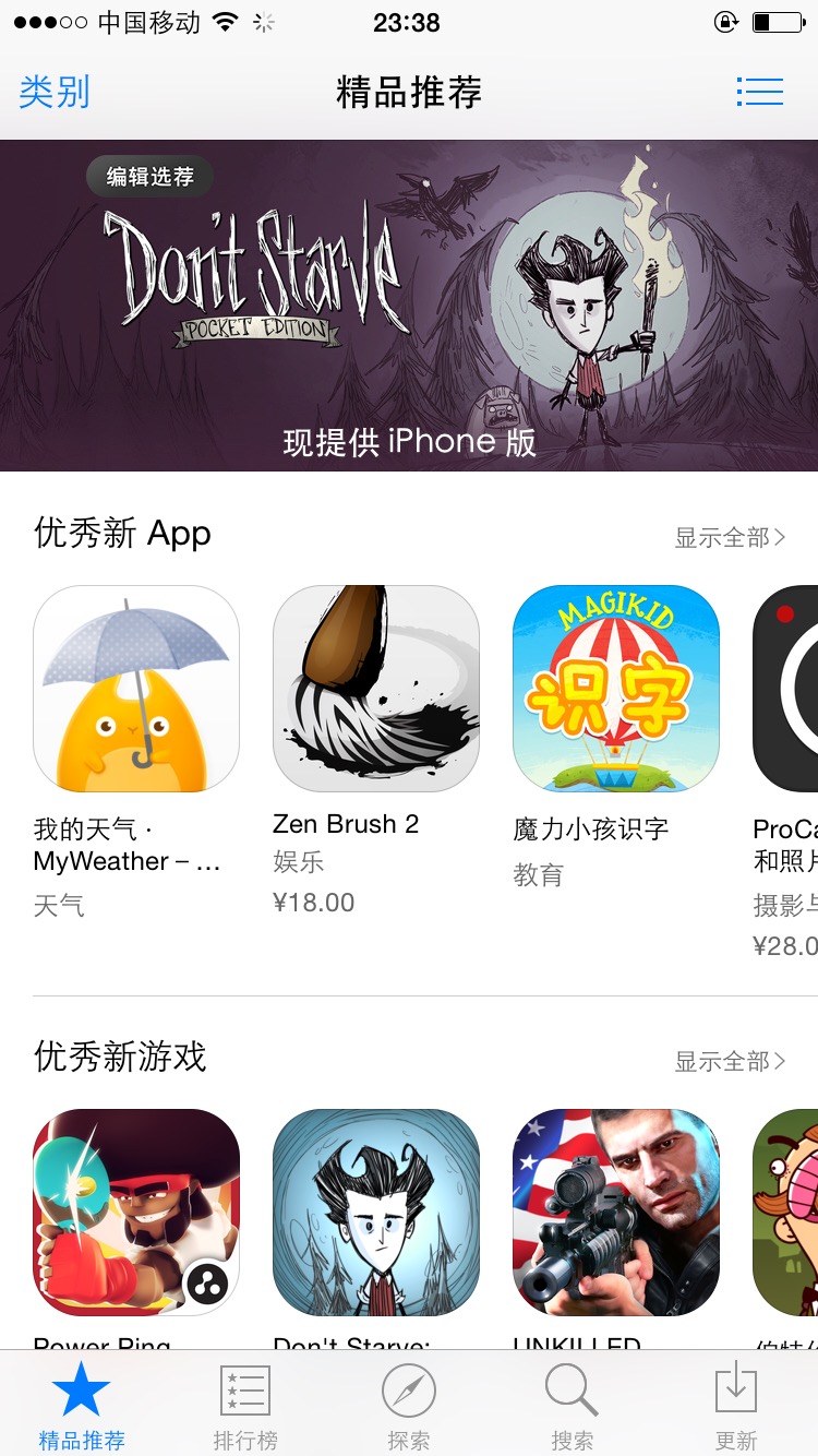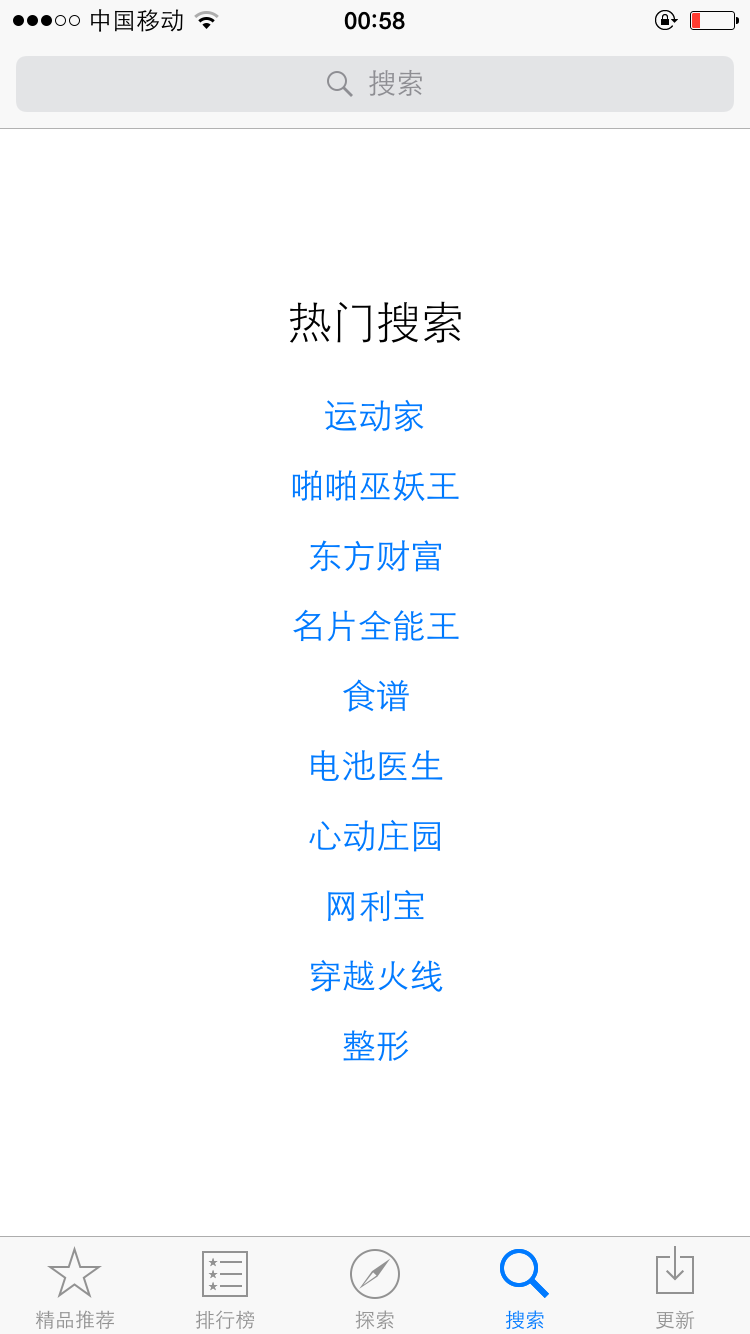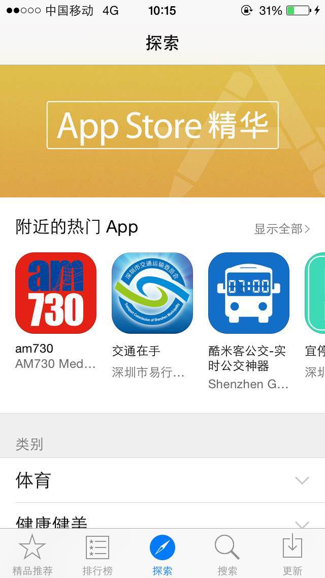 App Store探索栏目是对精品推荐栏的"类别"进行简化版文字引导,用户查询相关信息比精品推荐栏更为方便,但探索栏和精品推荐拦同出一辙,都是编辑推荐位。不同之处在于这里有更为详细的分类,具体的推荐规则可以参考下面的"精品推荐"。