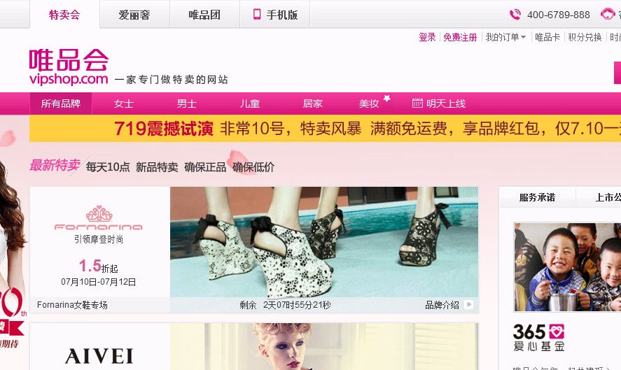 目前,唯品会网站上已经打出7.19超级特卖节,但当当尾品汇还未透露具体促销计划。据知情人透露,目前唯品会和当当尾品汇两大特卖平台,正在疯狂的抢夺供应商备战7月促销,预计双方具体的促销计划和力度很快就会揭开。