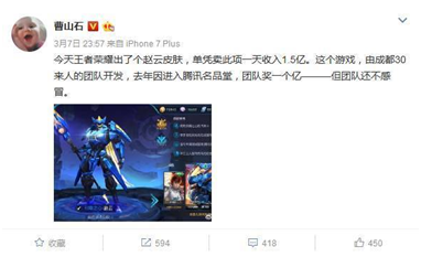 比如前不久的520,王者荣耀官方就推出了小乔周瑜的情人节皮肤限量版,如若逾期,该英雄特色皮肤就会下架,所以很多玩家都会愿意花上几十块买一个限量版皮肤,然后秀皮肤,这就是王者荣耀日进一亿的原因。