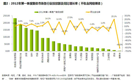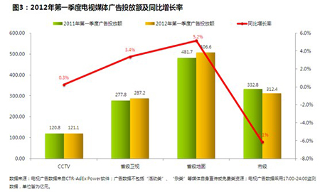 2012年,在电视政策的驱使下,电视广告的资源虽然有一定程度的减少,但其优势仍是不可撼动的,依然是主流媒体,电视广告仍具有相当程度的不可或缺性。随着新一轮的涨价以及广告资源的压缩,媒体资源优势资源更为稀缺,成为广告主争夺的焦点,但电视广告的过高成本使部分广告主们难以承受,电视以外的广告投放渠道受到关注,原本属于电视广告的收入被分流,但从整体来看,电视媒体仍是广告主营销的主力。